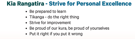 School Value – Kia Rangatira – Strive for Personal Excellence