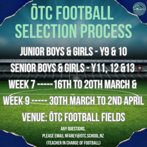 From 2026, Ōtūmoetai College will manage the football registration process directly, taking over from the Ōtūmoetai Football Club. The College will also oversee and conduct the official selection process for all Junior and Senior teams.