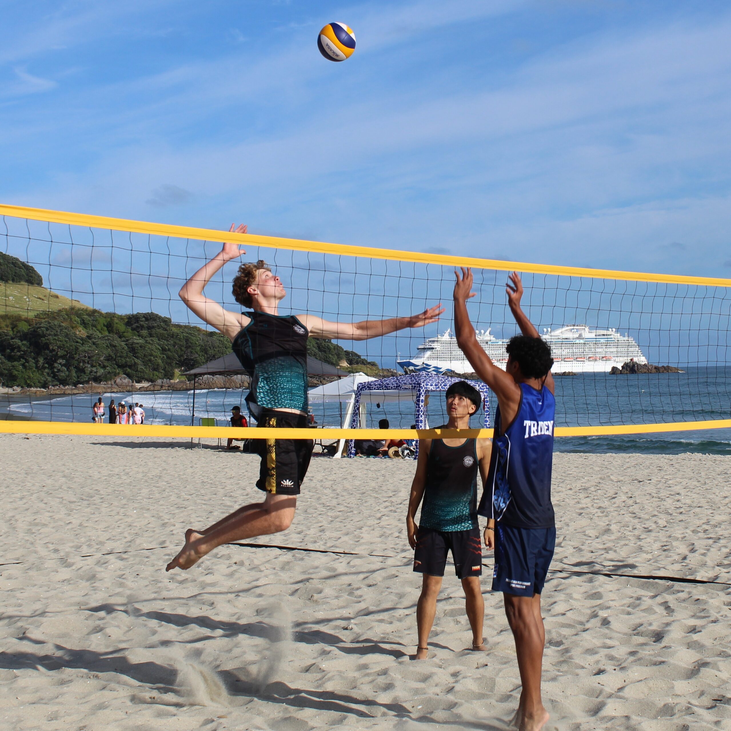 Beach Volleyball is rapidly growing in New Zealand school and Ōtūmoetai College is fortunate enough to have it’s own sand court on site! Beach volleyball is competitively played 2 on 2. However some player’s enjoy playing 4 on 4 or 6 on 6 as well. The Beach Volleyball scene in Tauranga kicks off in Spring each year with ‘have a go’ days and trials being held towards the end of term 3.
